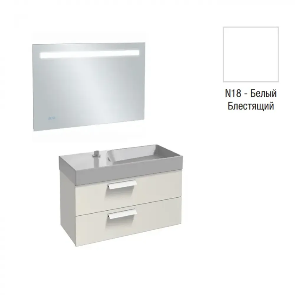 Технические характеристики Комплект мебели для ванной Rythmik 80 см, белый блестящий, 2 ящика, подсветка, анти-пар и часы, с подсветкой, подвесной монтаж EB1160-NF+EXP112-Z-00+EB1302-N18 Jacob Delafon