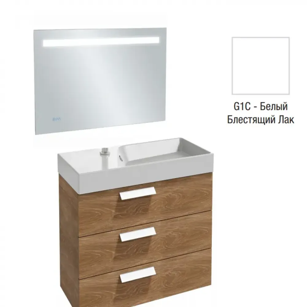 Rythmik 80см, комплект мебели для ванной, подвесной монтаж, белый блестящий лак, с подсветкой, функцией анти-пар и часами, 3 ящика, арт. EB1160-NF+EXP