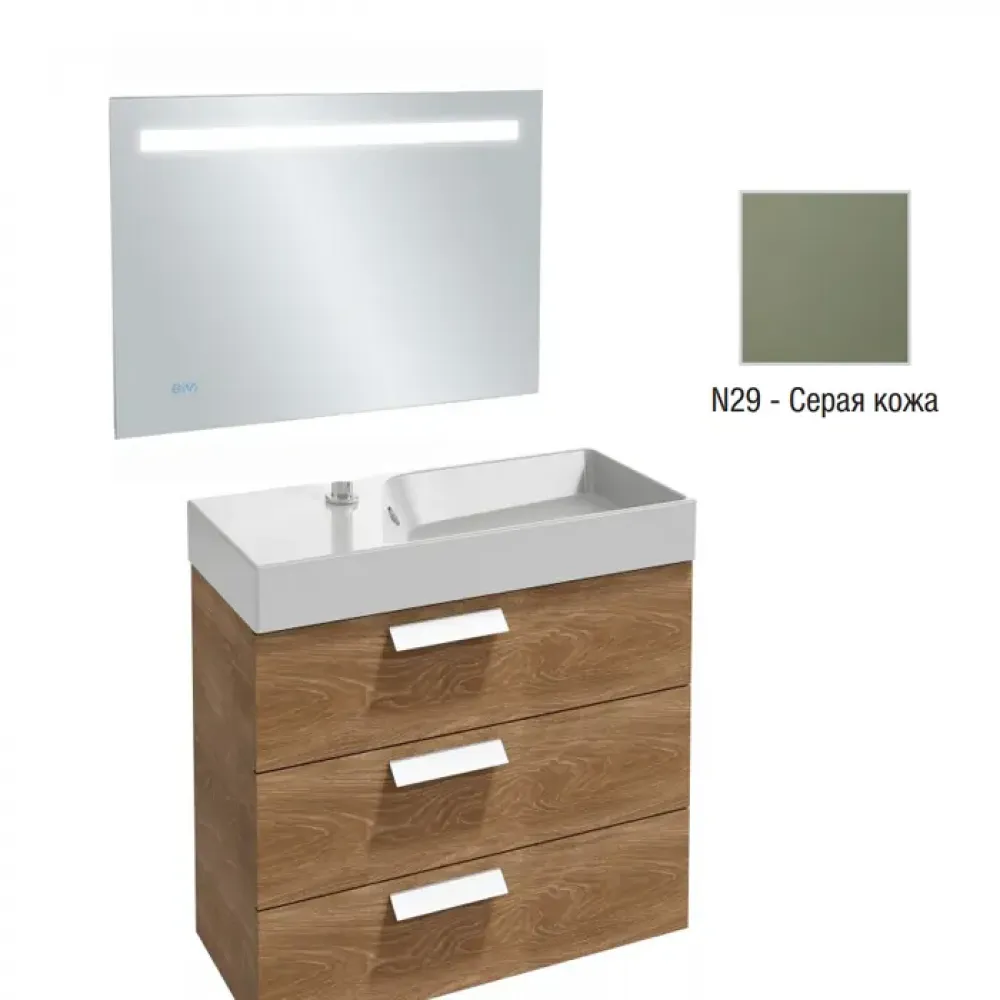 Комплект мебели для ванной Rythmik 80 см, серая кожа, 3 ящика, с подсветкой, функцией анти-пар и часами, с подсветкой, подвесной монтаж EB1160-NF+EXP112-Z-00+EB1308-N29 Jacob Delafon
