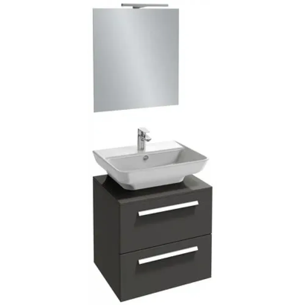 Комплект мебели для ванной Spherik 60 см, ореховое дерево, 2 выдвижных ящика, 1 отверстие под смеситель, с подсветкой, подвесной монтаж, с подсветкой EB1080-NF+EGD111-Z-00+EB1385-E16 Jacob Delafon