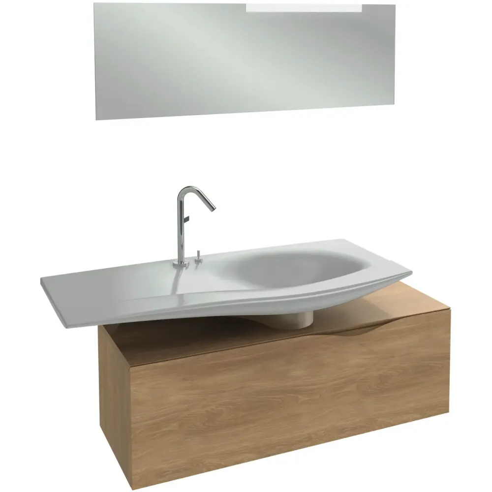 Комплект мебели для ванной Stillness 120 см, натуральный дуб, смещенная установка раковины, подвесной монтаж, с подсветкой E1292-09-00+EB2001-P6+EB2008-NF Jacob Delafon