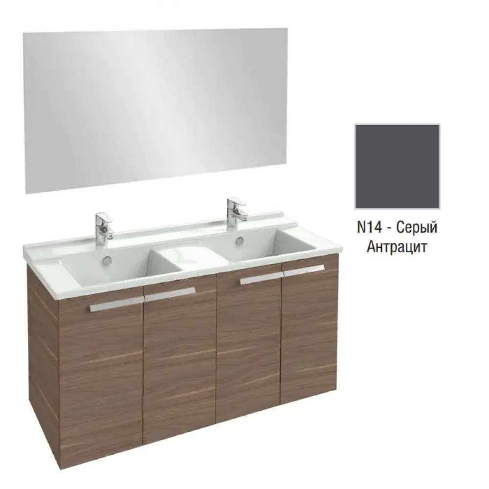 Технические характеристики Комплект мебели для ванной Struktura 120 см, серый антрацит, 4 дверцы, полочка с меламином, полотно, подвесной монтаж EB1085-NF+EXF112-00+EB1283-N14 Jacob Delafon