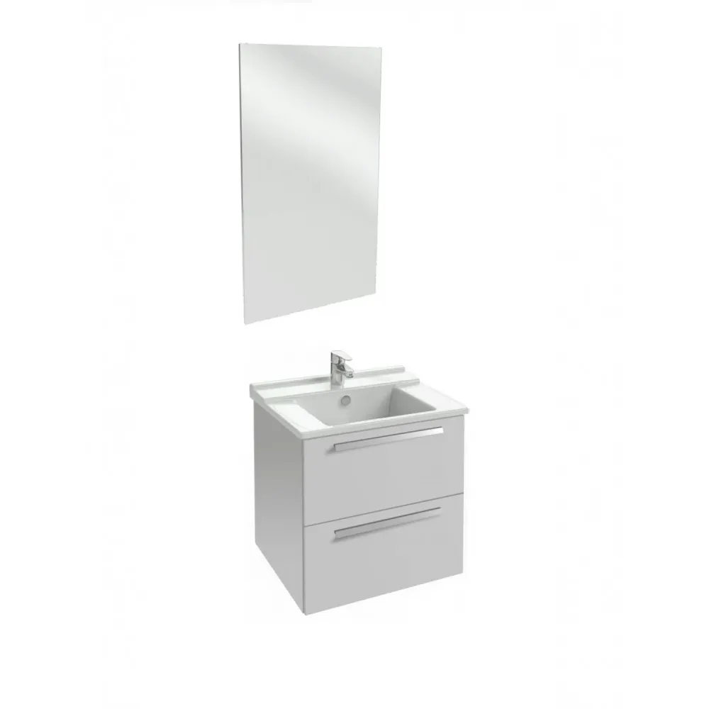 Комплект мебели для ванной Struktura 60 см, белый блестящий, 2 ящика, зеркало, 1 отверстие для смесителя, подвесной монтаж EB1208-NF+EXI112-00+EB1276-N18 Jacob Delafon