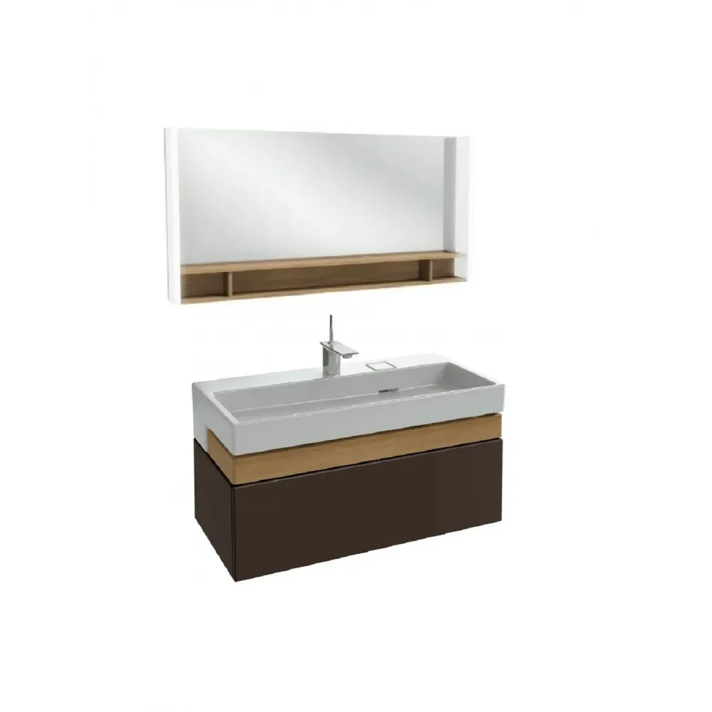 Комплект мебели для ванной Terrace 100 см, ледяной коричневый лак, 2 ящика, полочкой, 1 отверстие для смесителя, с подсветкой, подвесной монтаж EXC9112-00+EB1182-NF+EB1187-N23 Jacob Delafon
