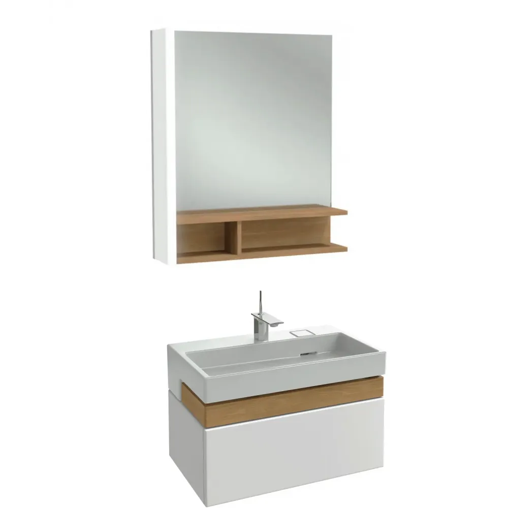 Технические характеристики Комплект мебели для ванной Terrace 60 см, белый блестящий лак, зеркало с подсветкой слева, подвесной монтаж, с подсветкой EB1180G-NF+EB1185-G1C+EXE9112-00 Jacob Delafon