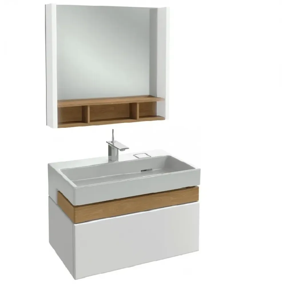 Комплект мебели для ванной Terrace 80 см, белый/белый, 2 ящика, с подсветкой, 1 отверстие для смесителя, подвесной монтаж, с подсветкой EXD112-00+EB1181-NF+EB1186-G1C-G1C Jacob Delafon