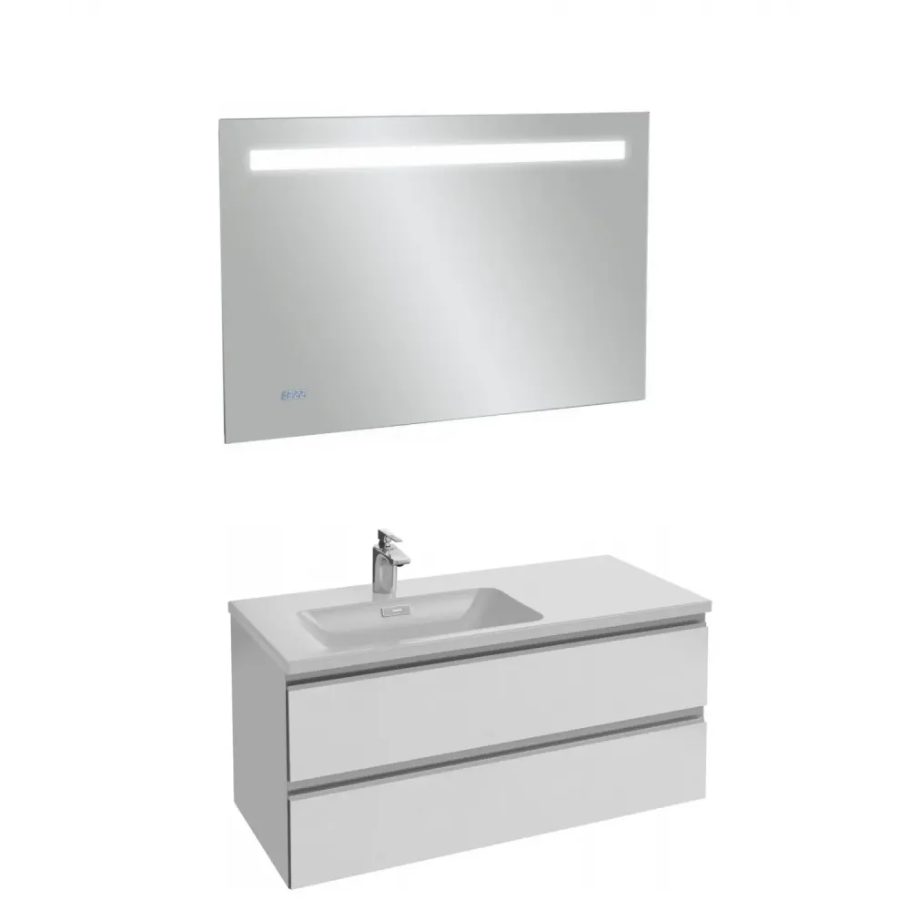 Технические характеристики Комплект мебели для ванной Vox 100 см, белый, с 2 ящиками, с левосторонней раковиной, с подсветкой, подвесной монтаж EB1161-NF+EB2025-RA-G1C+EXAC112-Z-00 Jacob Delafon
