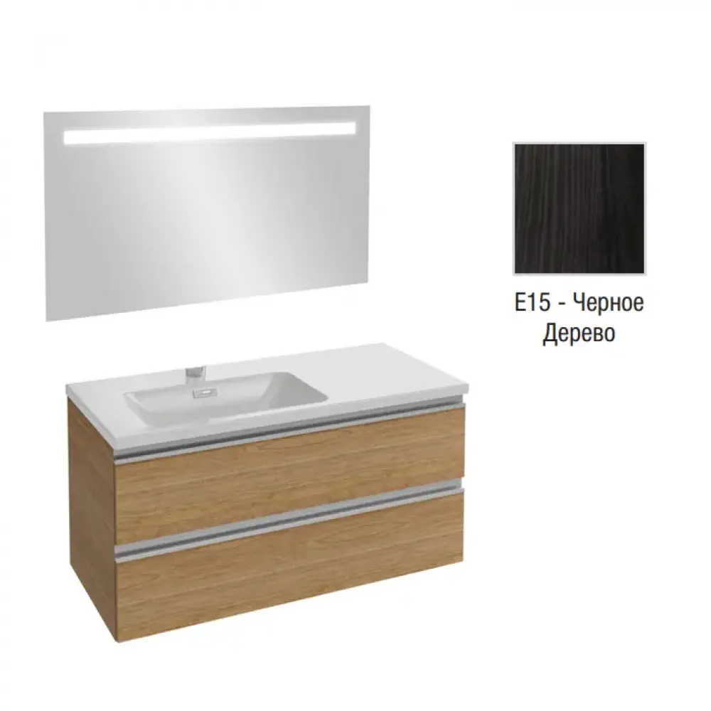 Технические характеристики Комплект мебели для ванной Vox 100 см, черное дерево, встроенные ручки, 2 выдвижных ящика, с функцией анти-пар, подвесной монтаж, с подсветкой EB1416-NF+EXAC112-Z-00+EB2025-RA-E15 Jacob Delafon