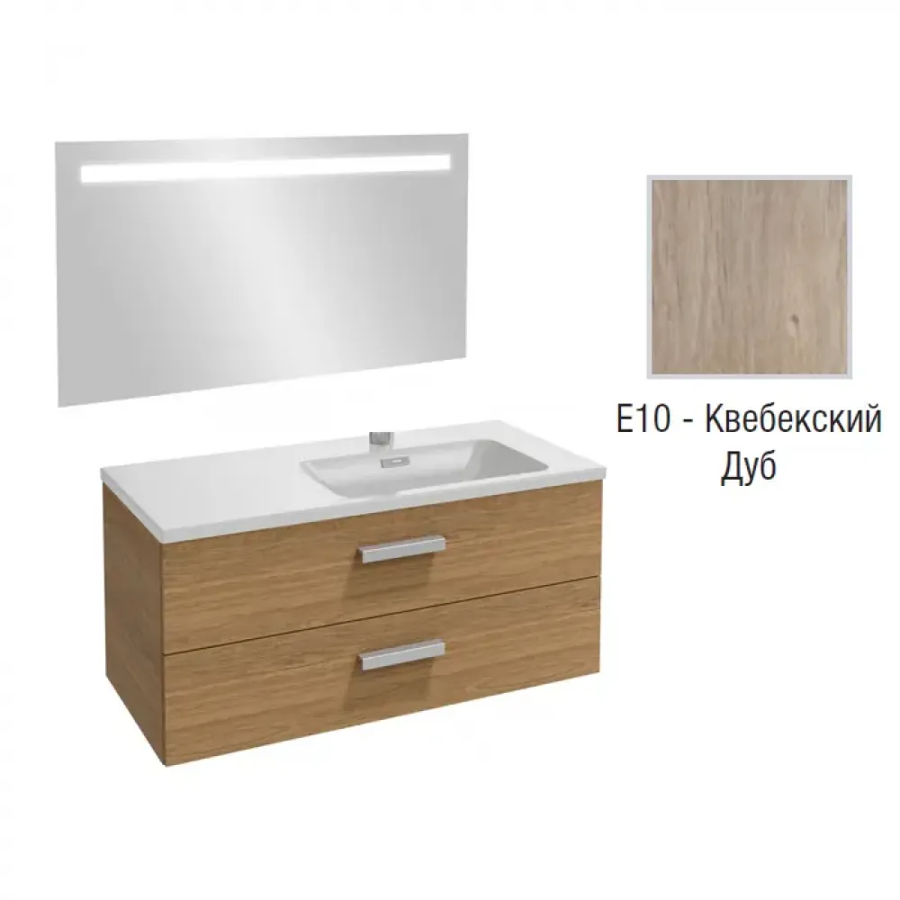 Технические характеристики Комплект мебели для ванной Vox 100 см, квебекский дуб, прямоугольная ручка, правосторонняя, 2 выдвижных ящика, с функцией анти-пар, с подсветкой, подвесной монтаж EB1416-NF+EXAD112-Z-00+EB2076-R2-E10 Jacob Delafon