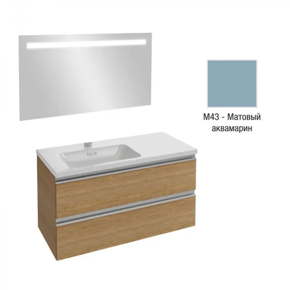 Комплект мебели для ванной Vox 100 см, матовый аквамарин, левосторонняя, 2 ящика, с функцией анти-пар, подвесной монтаж, с подсветкой EB1416-NF+EXAC112-Z-00+EB2025-RA-M43 Jacob Delafon
