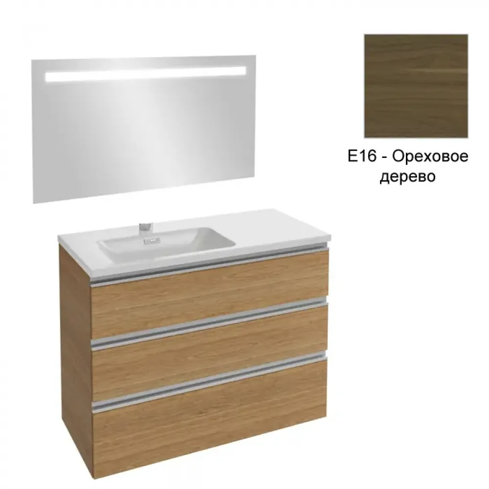 Vox 100см, комплект мебели для ванной, подвесной монтаж, ореховое дерево, левосторонняя, 3 выдвижных ящика, арт. EB1416-NF+EXAC112-Z-00+EB2045-RA-E16,