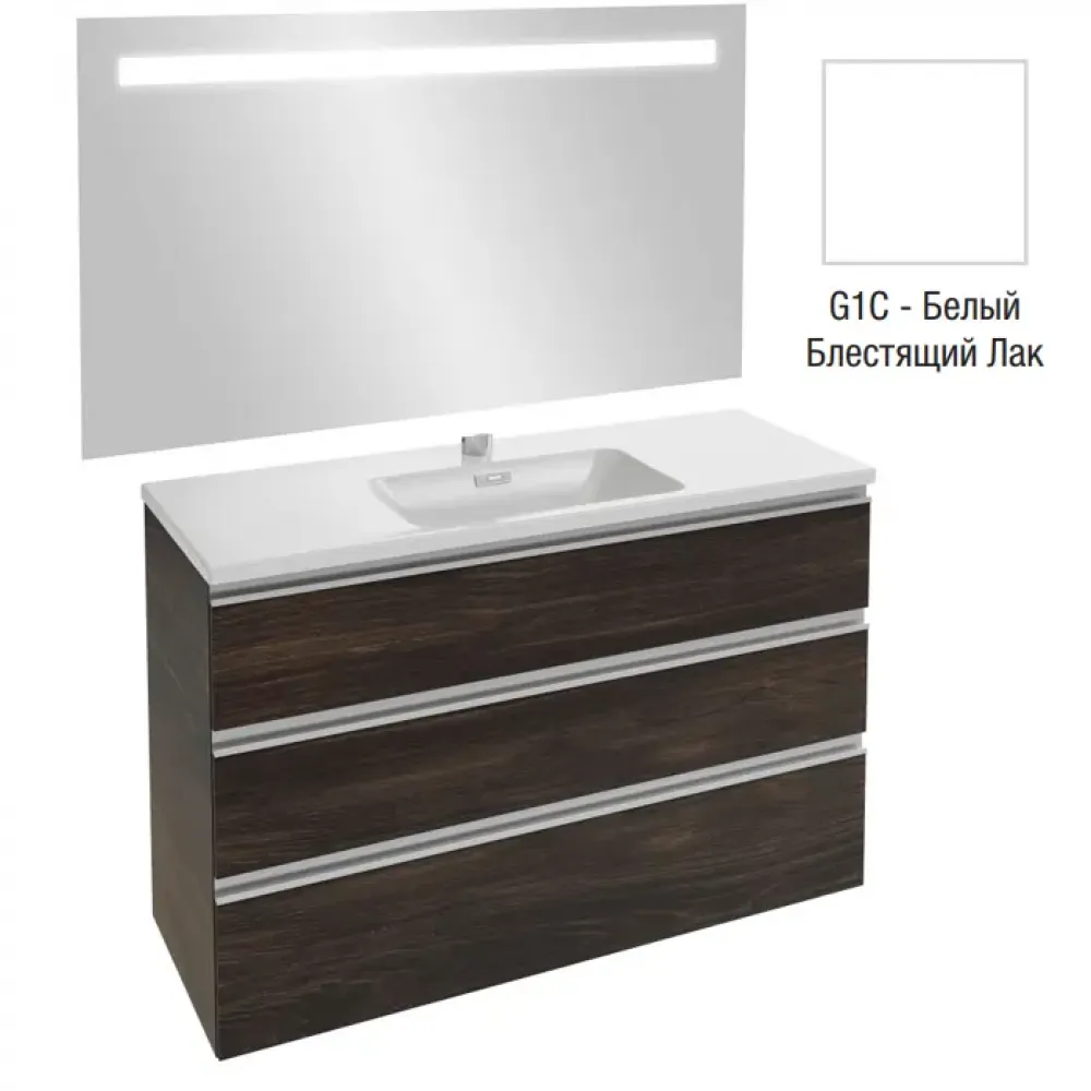 Технические характеристики Комплект мебели для ванной Vox 120 см, белый блестящий лак, с 3 выдвижными ящиками, встр. ручки, с функцией анти-пар, подвесной монтаж, с подсветкой EB1418-NF+EXAB112-Z-00+EB2041-RA-G1C Jacob Delafon