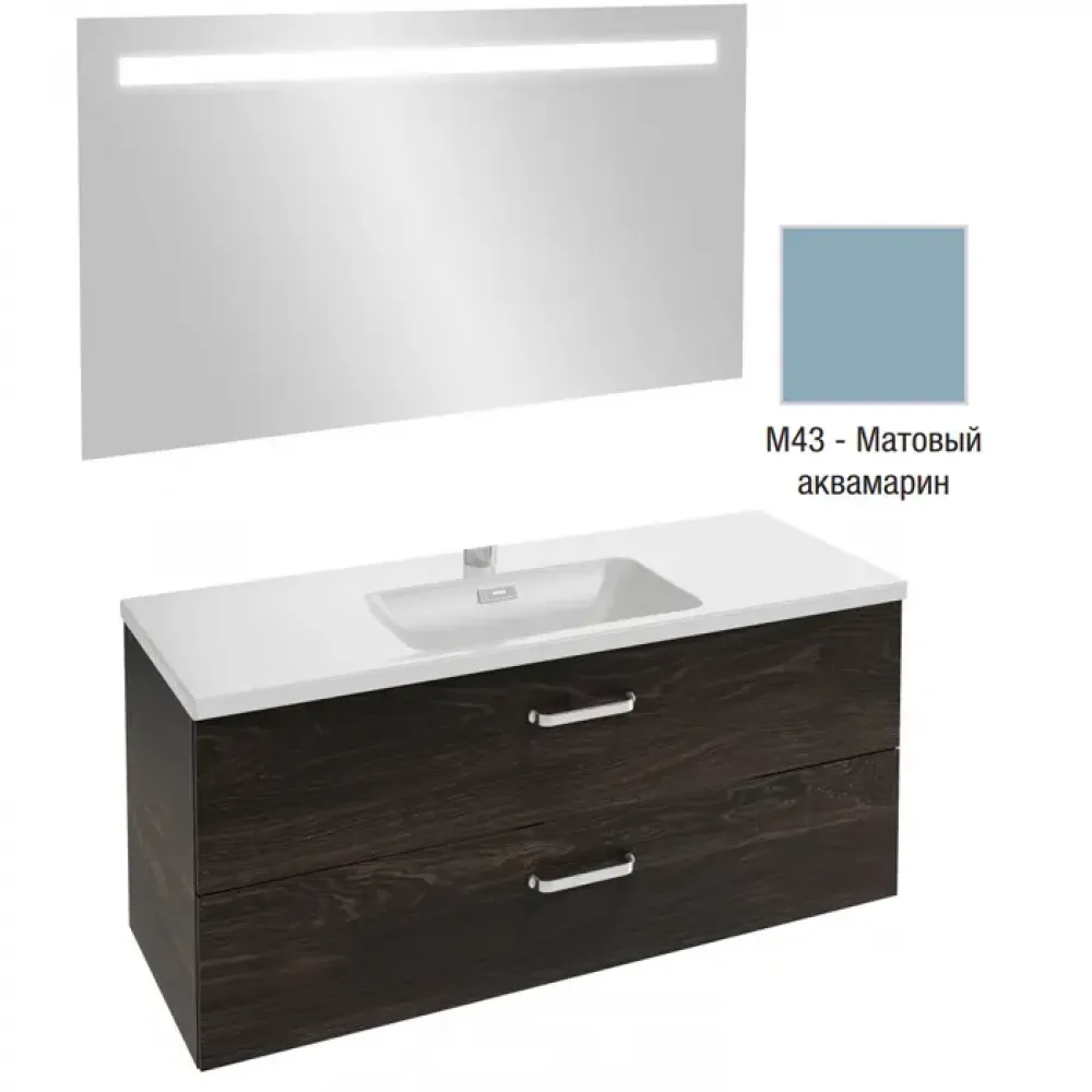 Комплект мебели для ванной Vox 120 см, матовый аквамарин, 2 выдвижных ящика, изогнутая ручка, с функцией анти-пар, с подсветкой, подвесной монтаж EB1418-NF+EXAB112-Z-00+EB2071-R1-M43 Jacob Delafon
