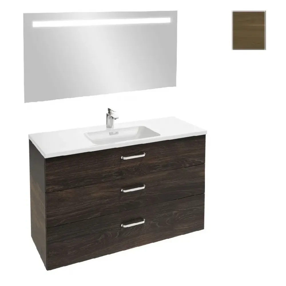 Комплект мебели для ванной Vox 120 см, ореховое дерево, 3 выдвижных ящика, с подсветкой, 1 отверстие для смесителя, подвесной монтаж, с подсветкой EB1418-NF+EXAB112-Z-00+EB2091-R2-E16 Jacob Delafon