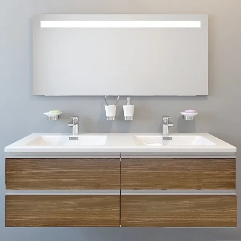 Технические характеристики Комплект мебели для ванной Vox 140 см, ореховое дерево, 4 ящика, двойная раковина-столешница, с подсветкой, подвесной монтаж EB1420-NF+EB2020-RA-E16+EXAA112-Z-00 Jacob Delafon