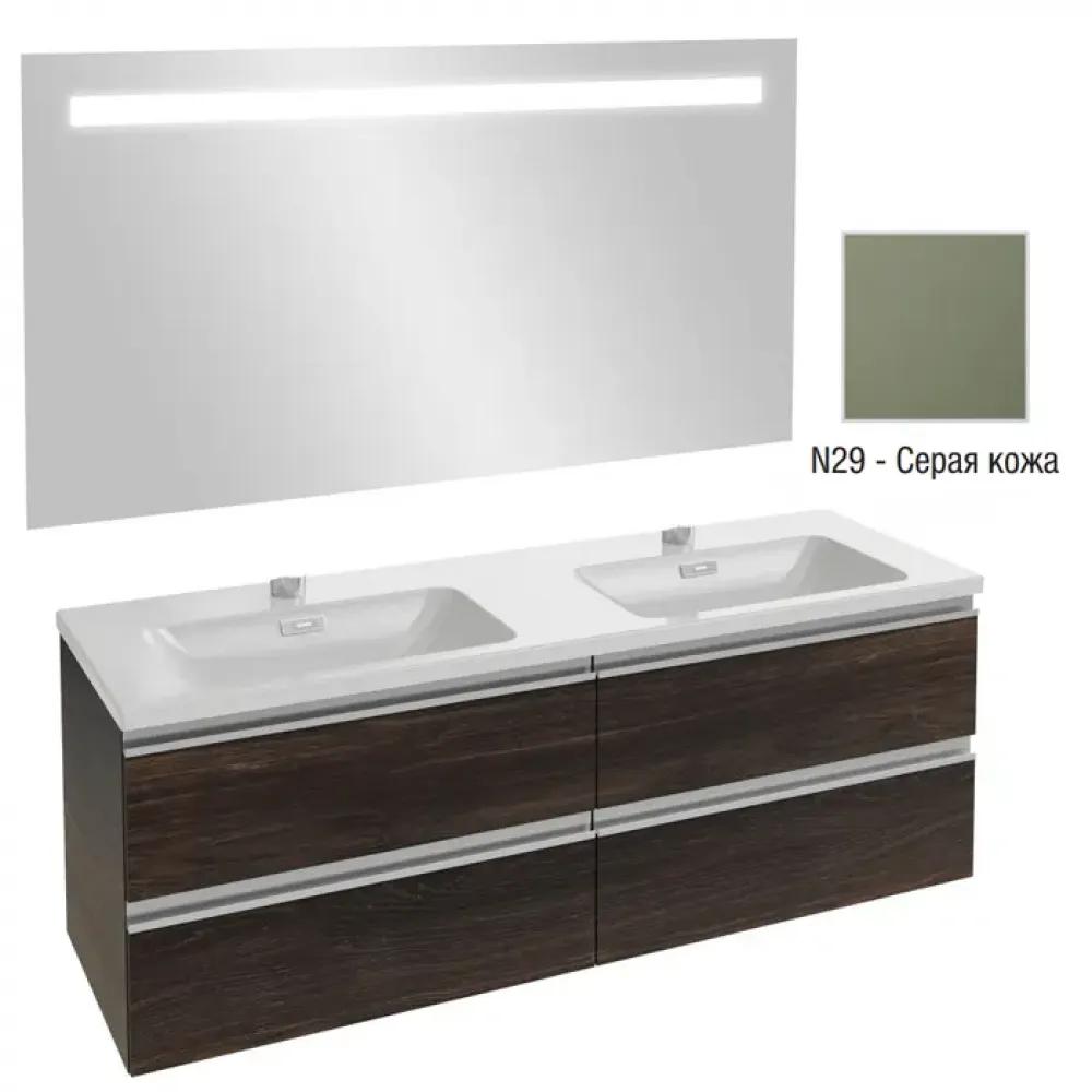 Комплект мебели для ванной Vox 140 см, серая кожа, 4 выдвижных ящика, с функцией анти-пар, подвесной монтаж, с подсветкой EB1420-NF+EXAA112-Z-00+EB2020-RA-N29 Jacob Delafon