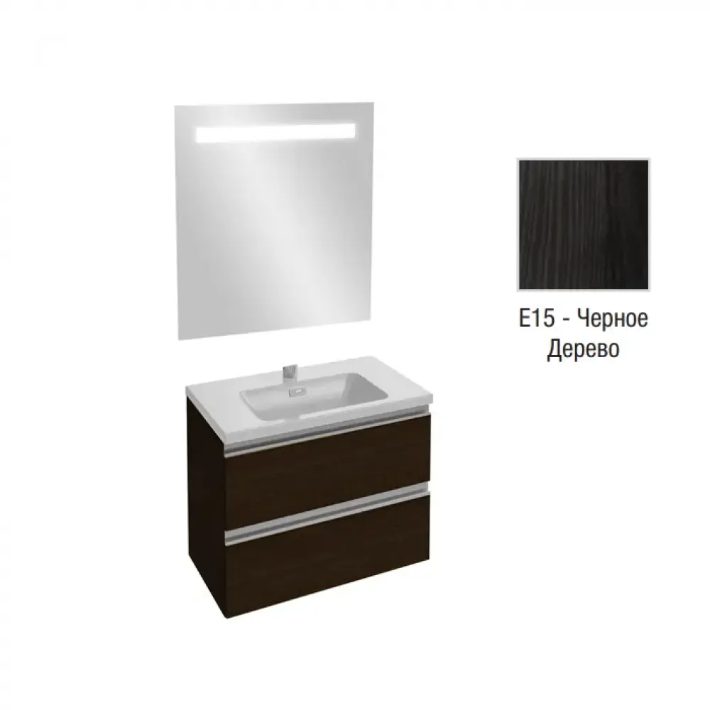 Технические характеристики Комплект мебели для ванной Vox 60 см, черное дерево, с 2 выдвижными ящиками, с функцией анти-пар, с подсветкой, подвесной монтаж EB1411-NF+EXAF112-Z-00+EB2030-RA-E15 Jacob Delafon