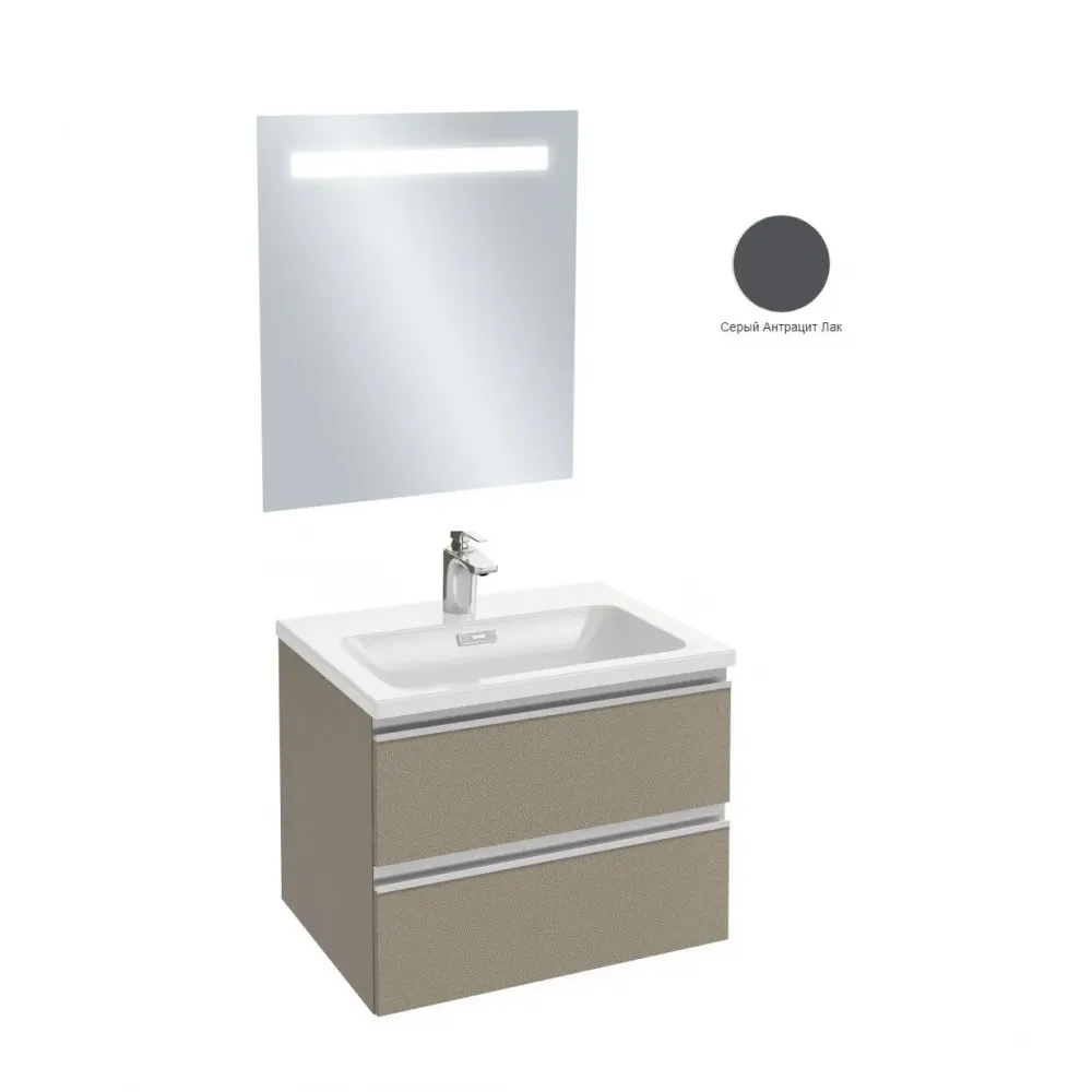 Комплект мебели для ванной Vox 60 см, серый антрацит лак, 2 ящика, 1 отверстие для смесителя, с подсветкой, подвесной монтаж EB1411-NF+EXAF112-Z-00+EB2030-RA-442 Jacob Delafon