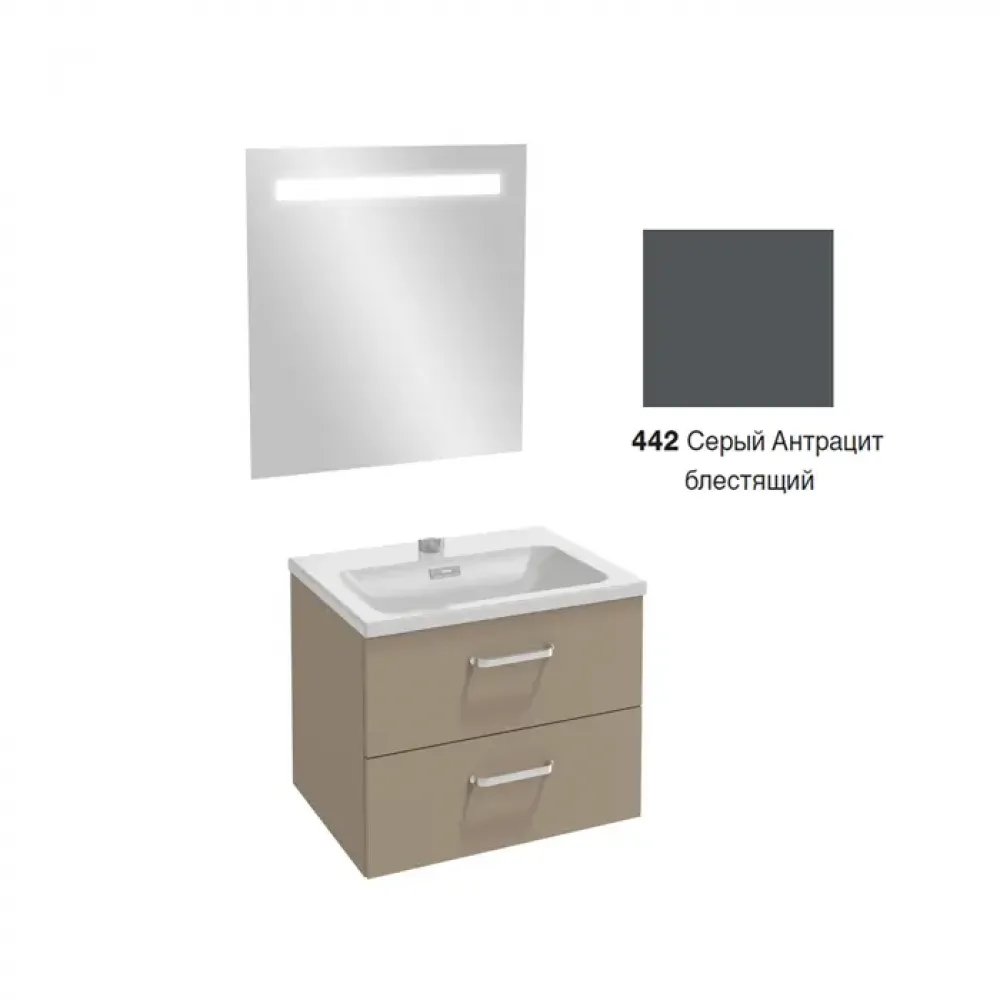 Комплект мебели для ванной Vox 60 см, серый антрацит лак, изогнутая ручка, 2 выдвижных ящика, подвесной монтаж, с подсветкой EB1411-NF+EXAF112-Z-00+EB2080-R1-442 Jacob Delafon