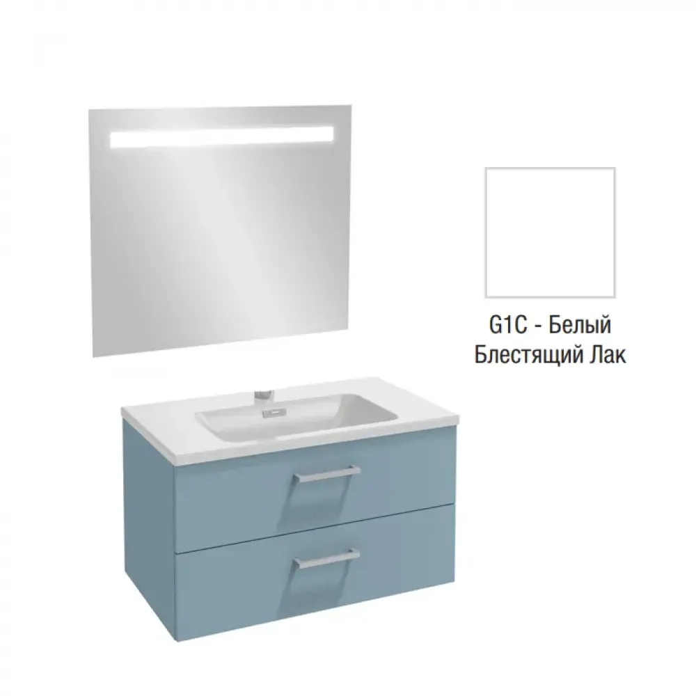Комплект мебели для ванной Vox 80 см, изогнутая ручка, белый блестящий лак, 2 выдвижных ящика, с подсветкой, подвесной монтаж EB1413-NF+EXAE112-Z-00+EB2078-R1-G1C Jacob Delafon