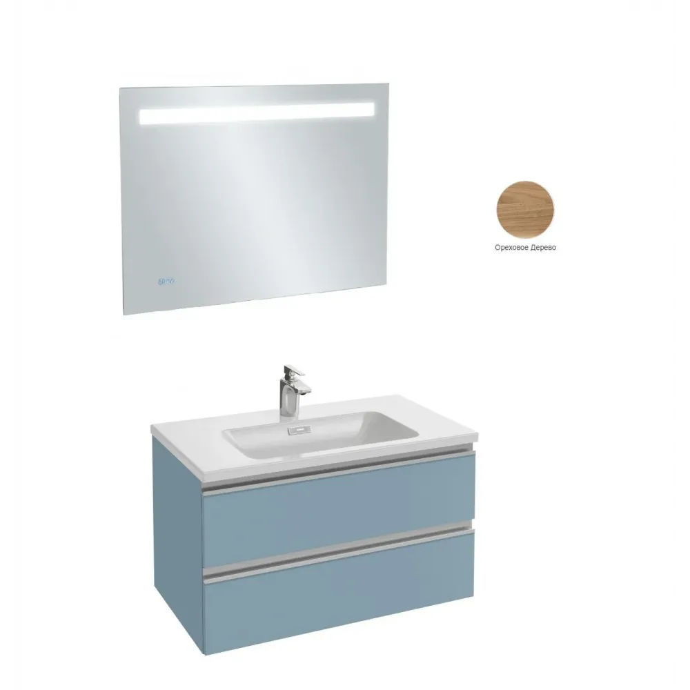 Комплект мебели для ванной Vox 80 см, ореховое дерево, 2 ящика, 1 отверстие для смесителя, с подсветкой, подвесной монтаж EB1160-NF+EB2028-RA-E16+EXAE112-Z-00 Jacob Delafon