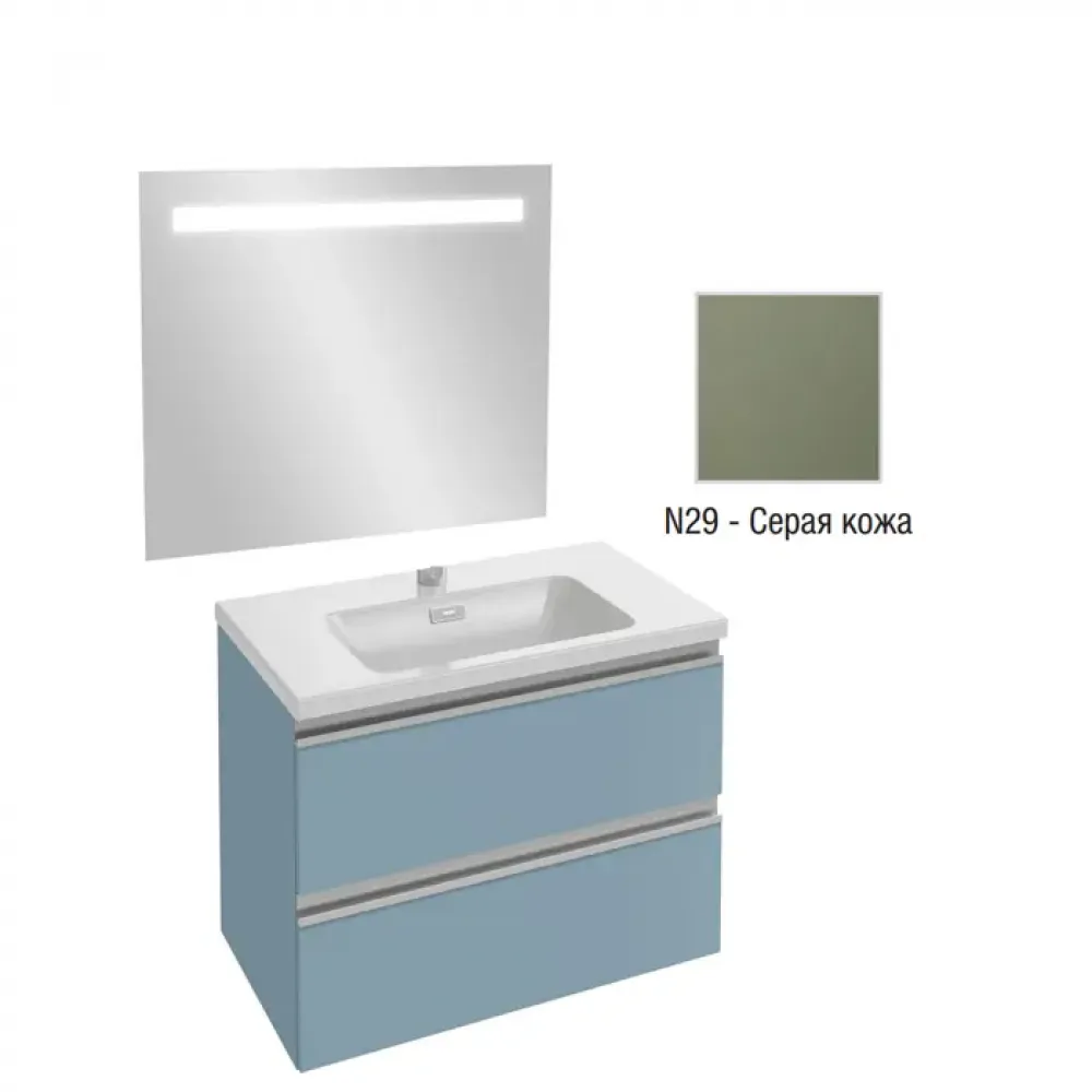 Комплект мебели для ванной Vox 80 см, серая кожа, 2 выдвижных ящика, с функцией анти-пар, подвесной монтаж, с подсветкой EB1413-NF+EXAE112-Z-00+EB2028-RA-N29 Jacob Delafon
