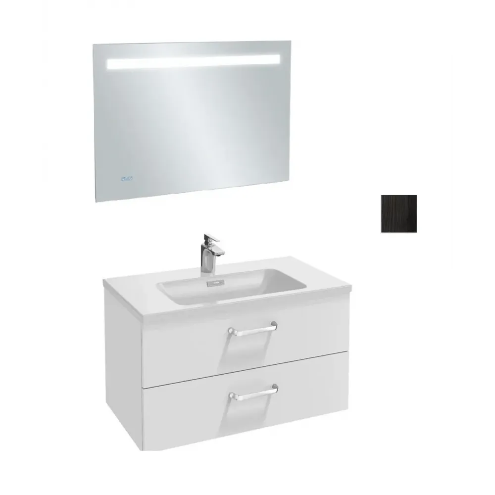 Комплект мебели для ванной Vox 80 см, цвет черное дерево, прямые ручки, подвесной монтаж, с подсветкой EB1160-NF+EXAE112-Z-00+EB2078-R4-E15 Jacob Delafon