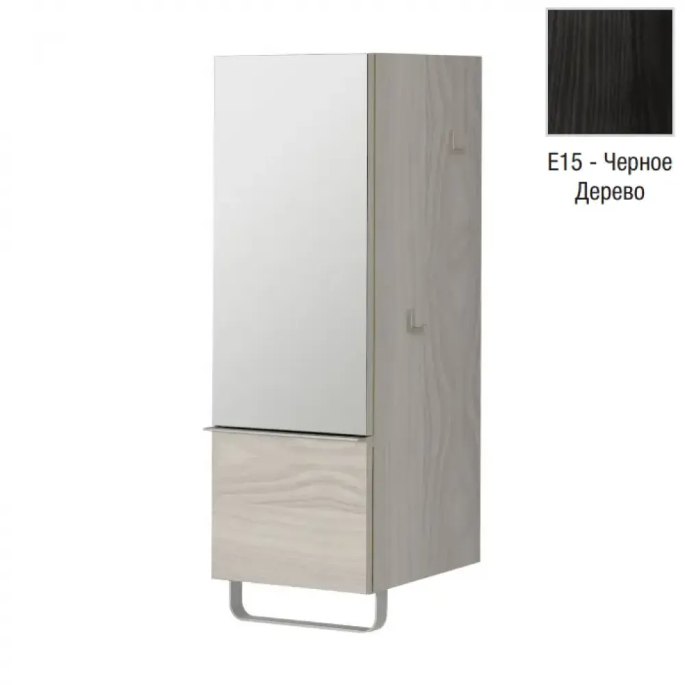 Odeon Up 35х34х96см, шкаф, правый, черное дерево, 2 полки, зеркальная дверца, ящик, полотенцесушка, крючки для украшений, арт. EB893D-E15, Jacob Delaf