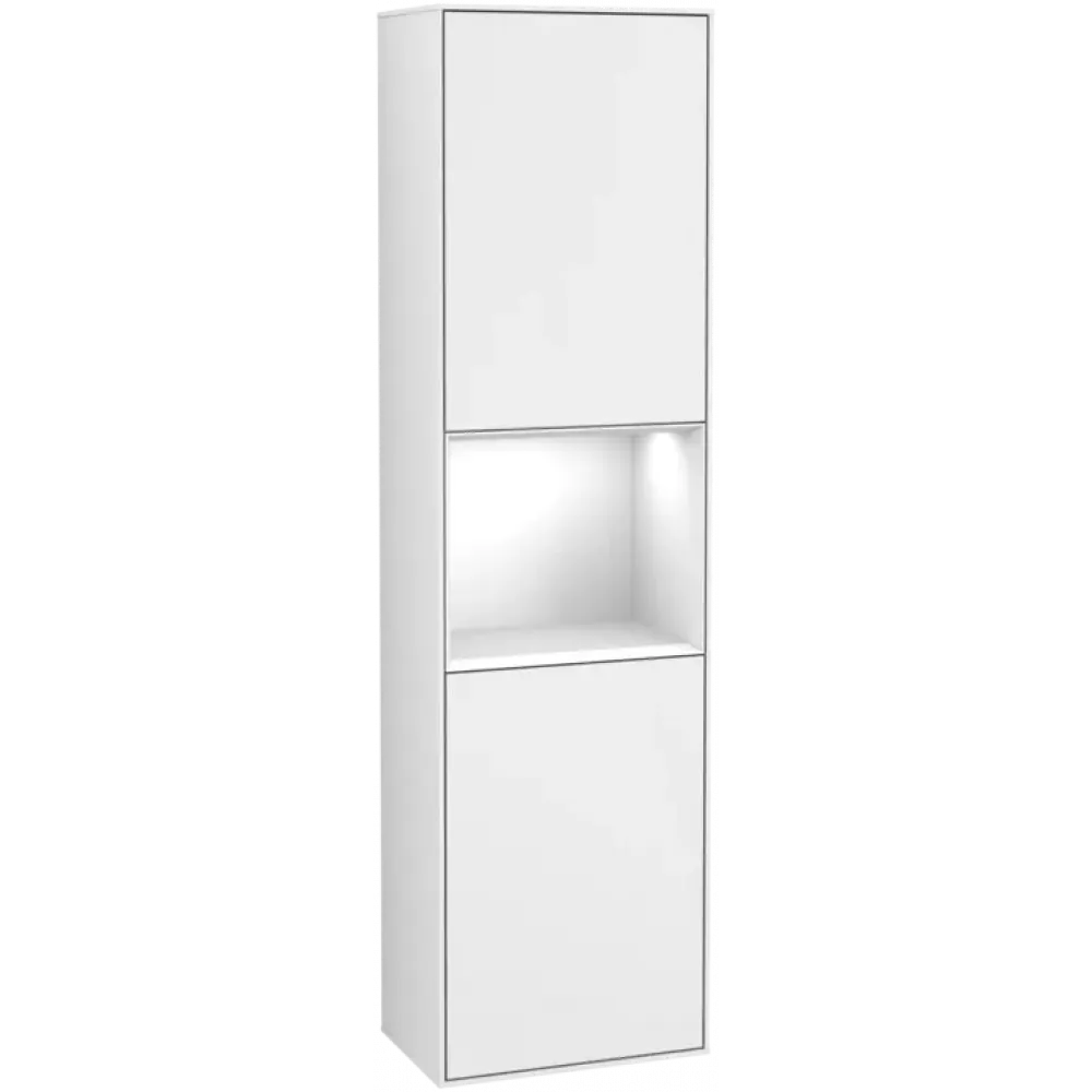 Villeroy & Boch Finion Шкаф-пенал, с подсветкой, 2 двери, 418 x 1516 x 270 mm, Glossy White Lacquer / Glossy White Lacquer