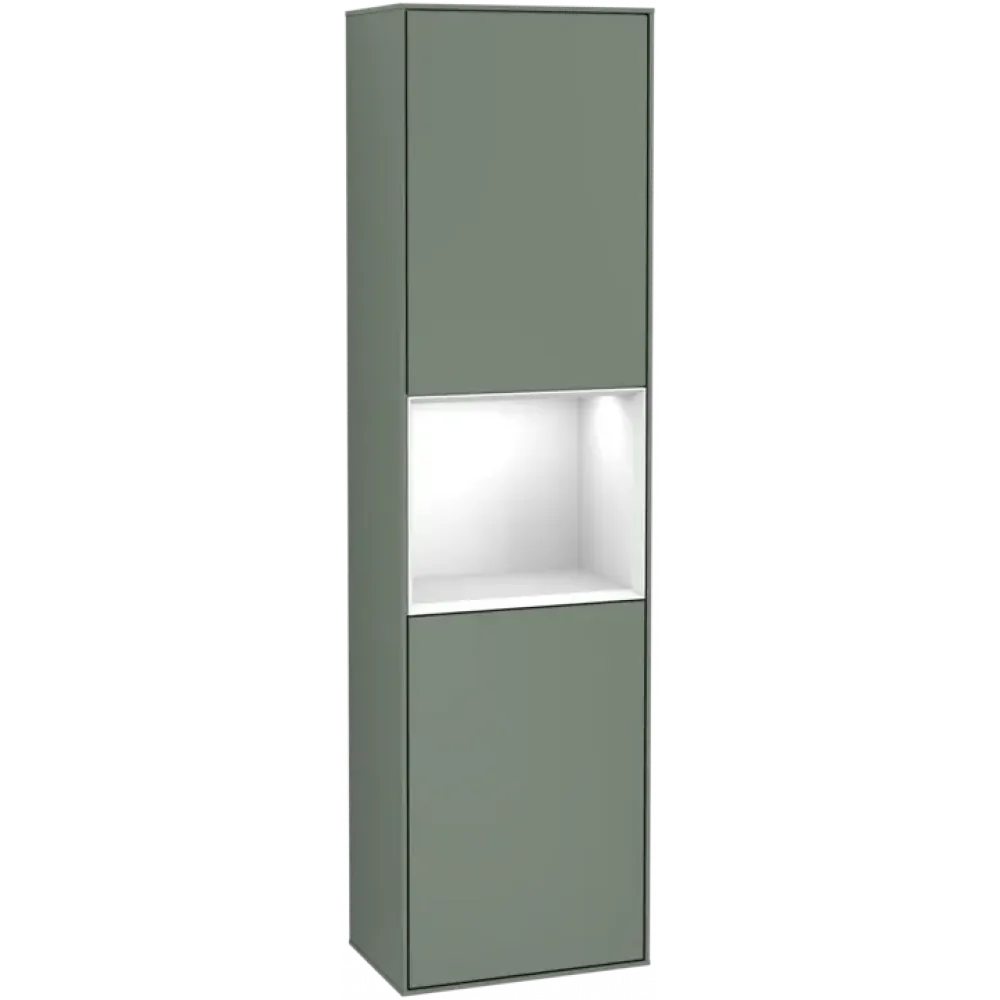 Villeroy & Boch Finion Шкаф-пенал, с подсветкой, 2 двери, 418 x 1516 x 270 mm, Olive Matt Lacquer / Glossy White Lacquer