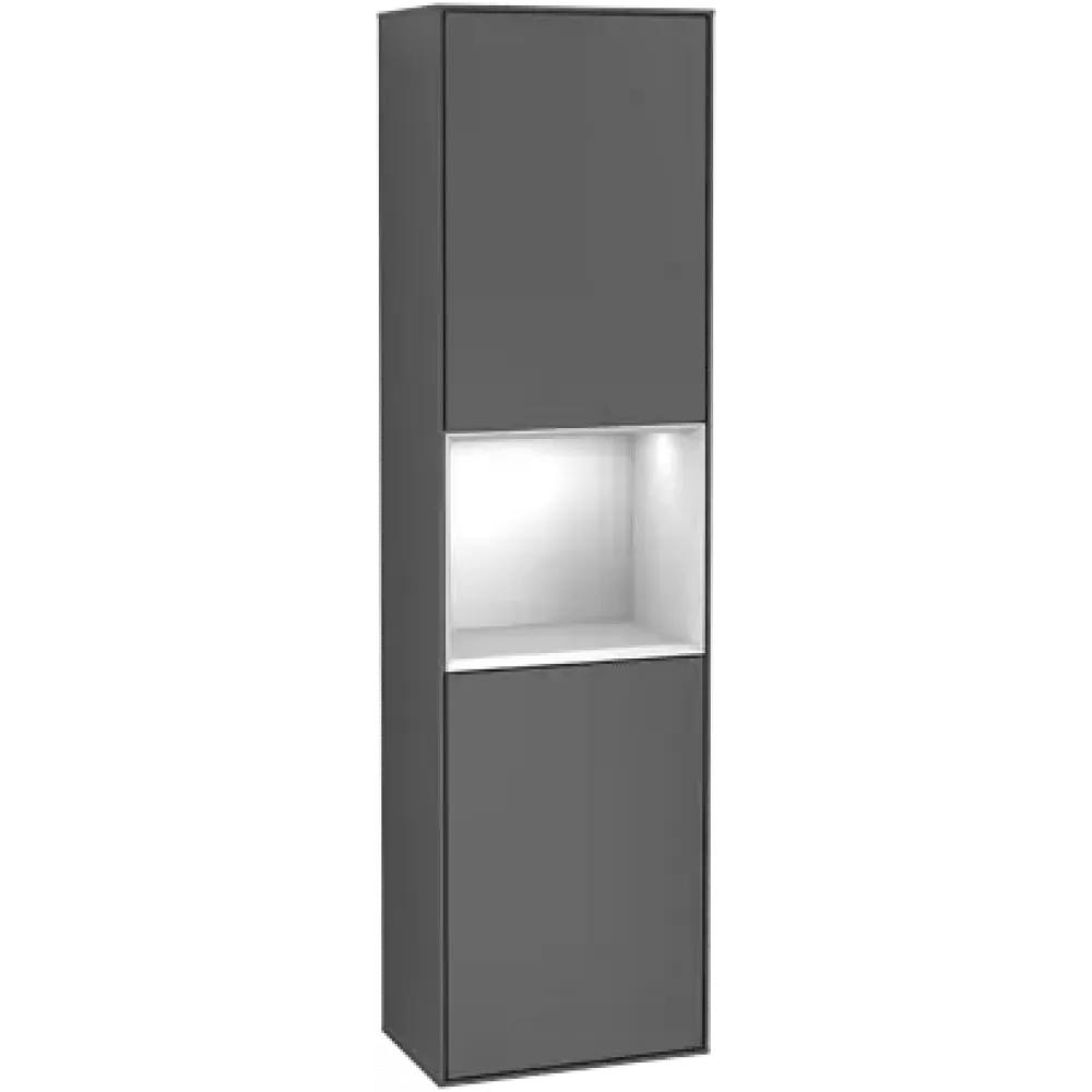 Villeroy & Boch Finion Шкаф-пенал, с подсветкой, 2 двери, 418 x 1516 x 270 mm, Silk Grey Matt Lacquer / Glossy White Lacquer