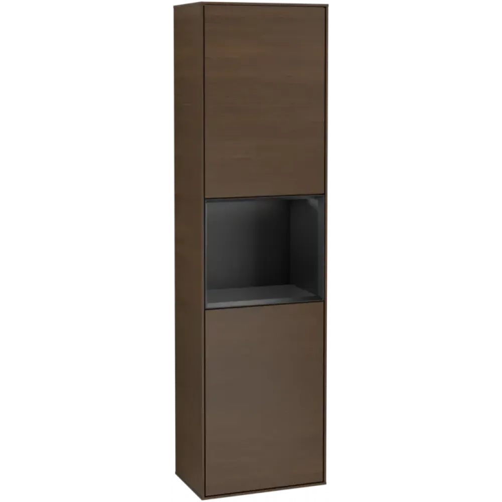 Villeroy & Boch Finion Шкаф-пенал, с подсветкой, 2 двери, 418 x 1516 x 270 mm, Walnut Veneer / Black Matt Lacquer