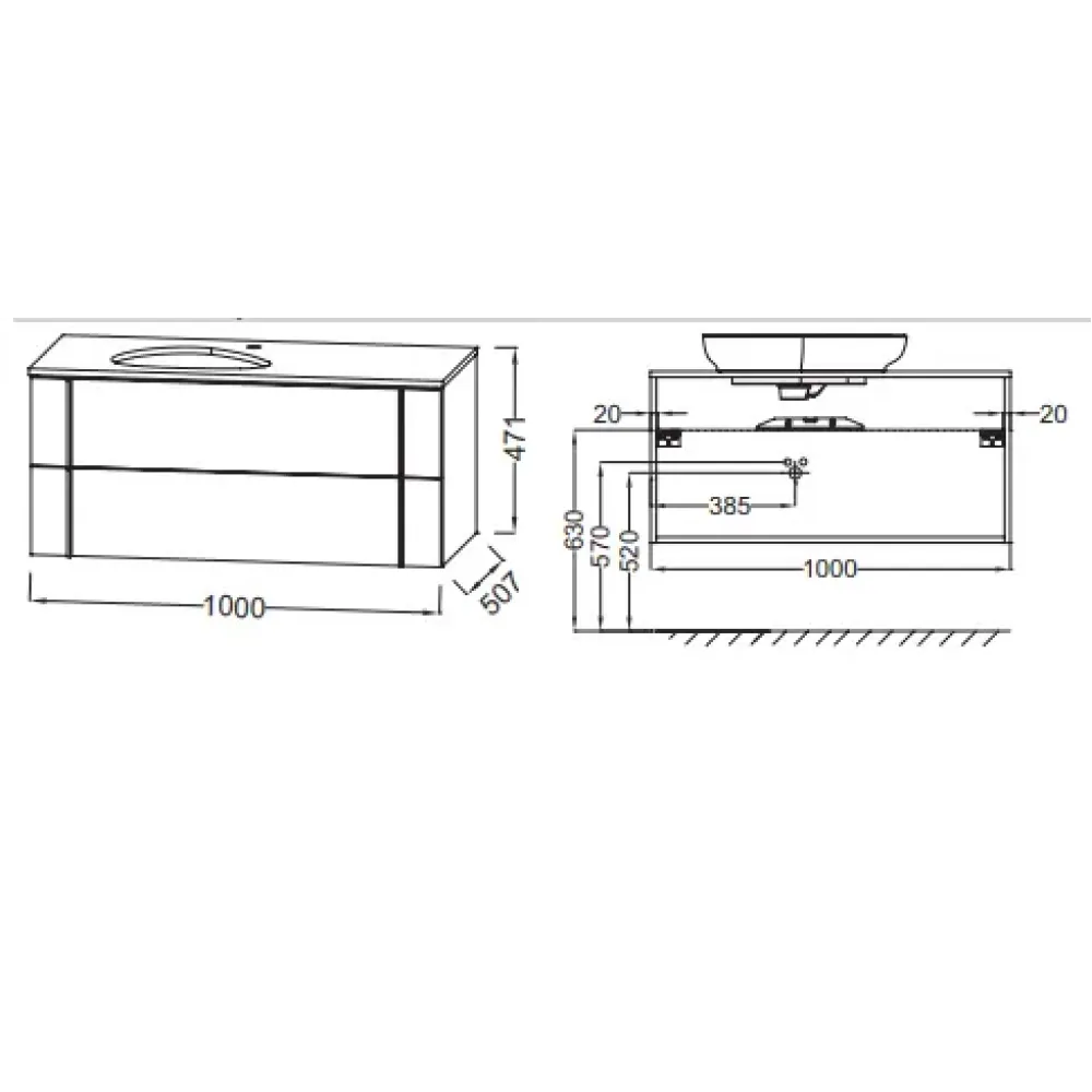 Технические характеристики Модуль с раковиной Nouvelle Vague 100 см, пепельный матовый, с 2 ящиками, подвесной монтаж EVI102-00+EB3040-M77 Jacob Delafon