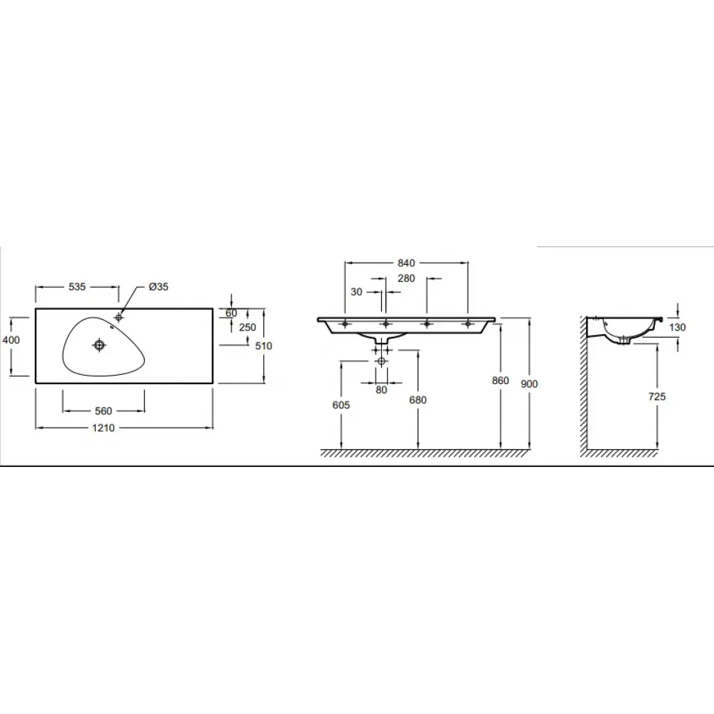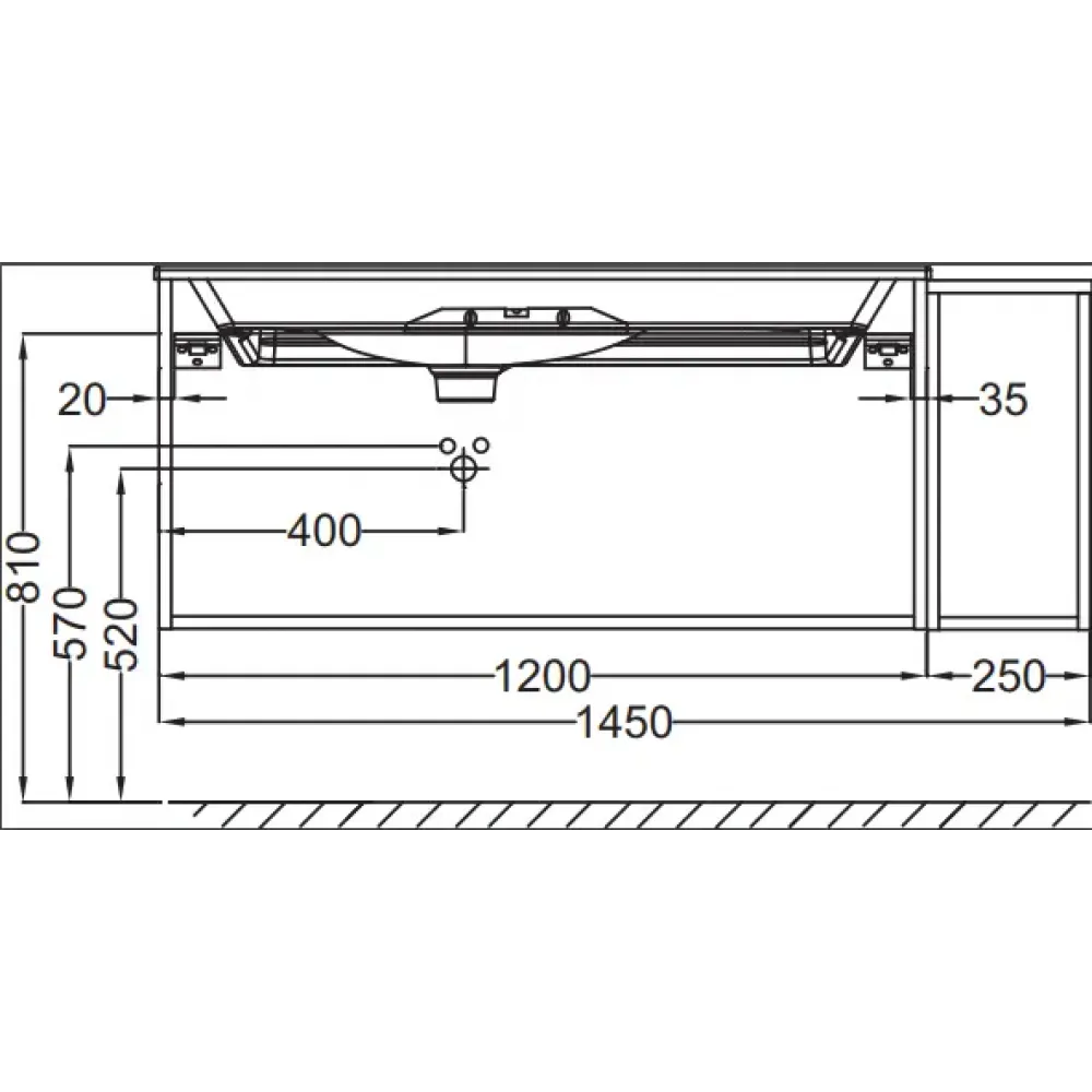 Подвесная раковина-столешница c шлифованной нижней кромкой для установки