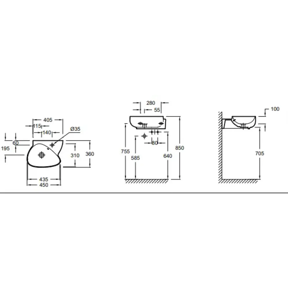 Технические характеристики Модуль с раковиной Nouvelle Vague 45 см, белый, подвесной монтаж EGK112-00+EB3045G-N18 Jacob Delafon