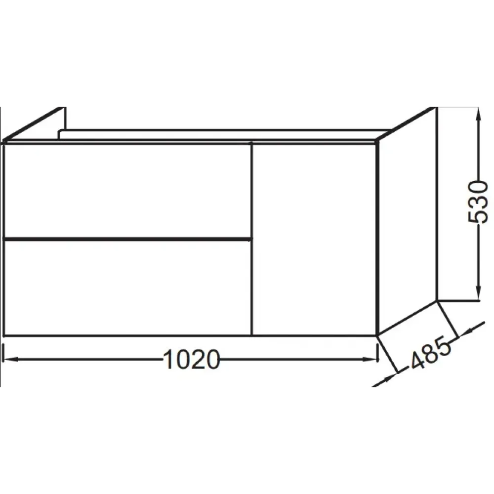 Решение хранения: выдвижные ящики с механизмом "плавное закрывание". 1 дверца справа.