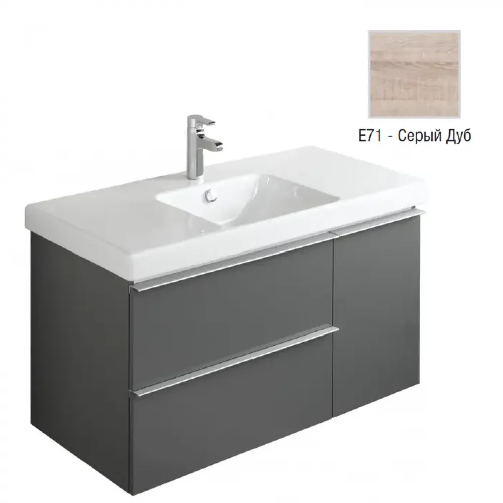Модуль с раковиной Odeon Up 105 см, серый дуб меламин, 2 выдвижных ящика, 1 дверца, с отверстием для смесителя, подвесной монтаж EB891-E71+E4731-00 Jacob Delafon