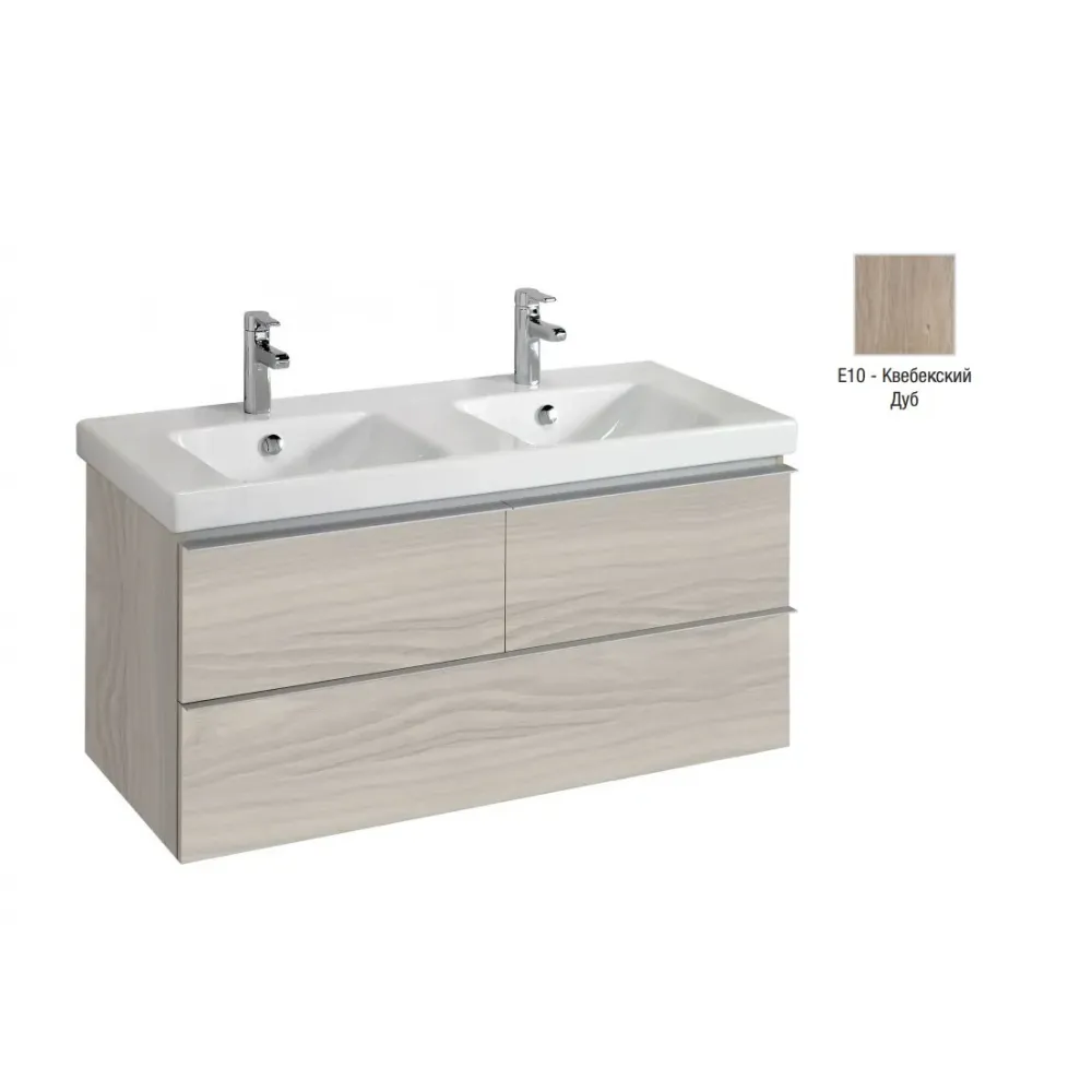 Модуль с раковиной Odeon Up 120 см, 3 ящика, механизм плавного закрывания, двойная раковина-столешница , квебекский дуб, подвесной монтаж E4730-00+EB892-E10 Jacob Delafon