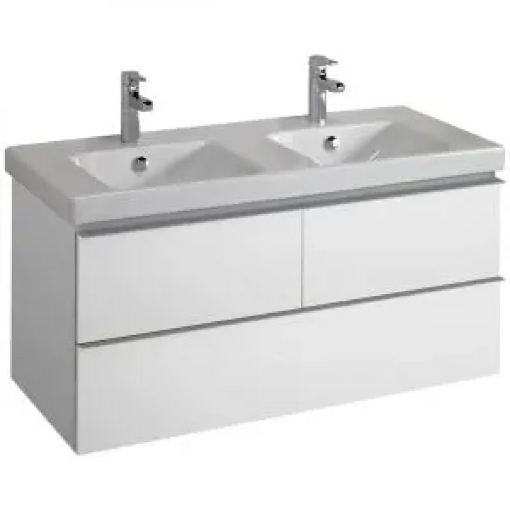 Модуль с раковиной Odeon Up 120 см, белый блестящий, 3 выдвижных ящика, двойная, с 2-мя отверстиями под смеситель, подвесной монтаж E4730-00+EB892-G1C Jacob Delafon