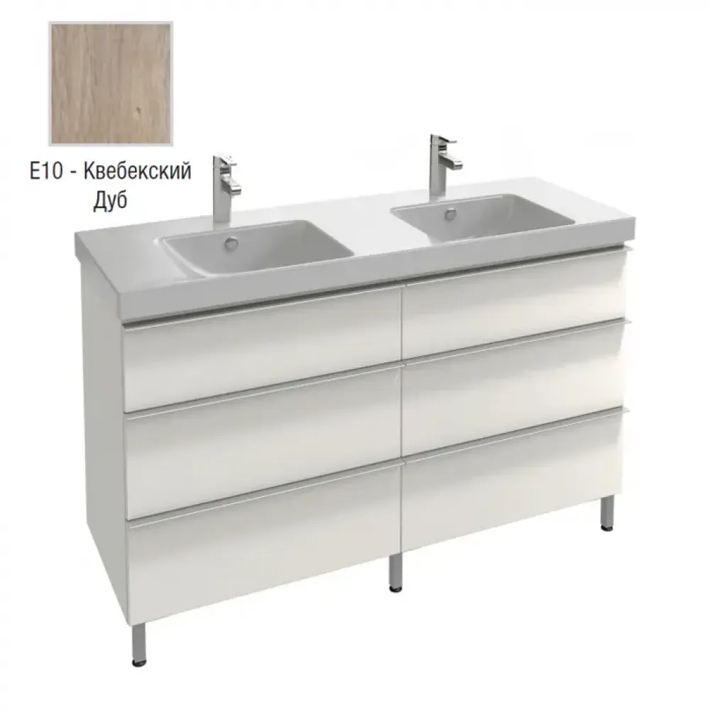 Модуль с раковиной Odeon Up 140 см, квебекский дуб, 6 ящиков, двойная раковина, с 2 отверстиями под смеситель, подвесной монтаж E4779-00+EB996-E10 Jacob Delafon