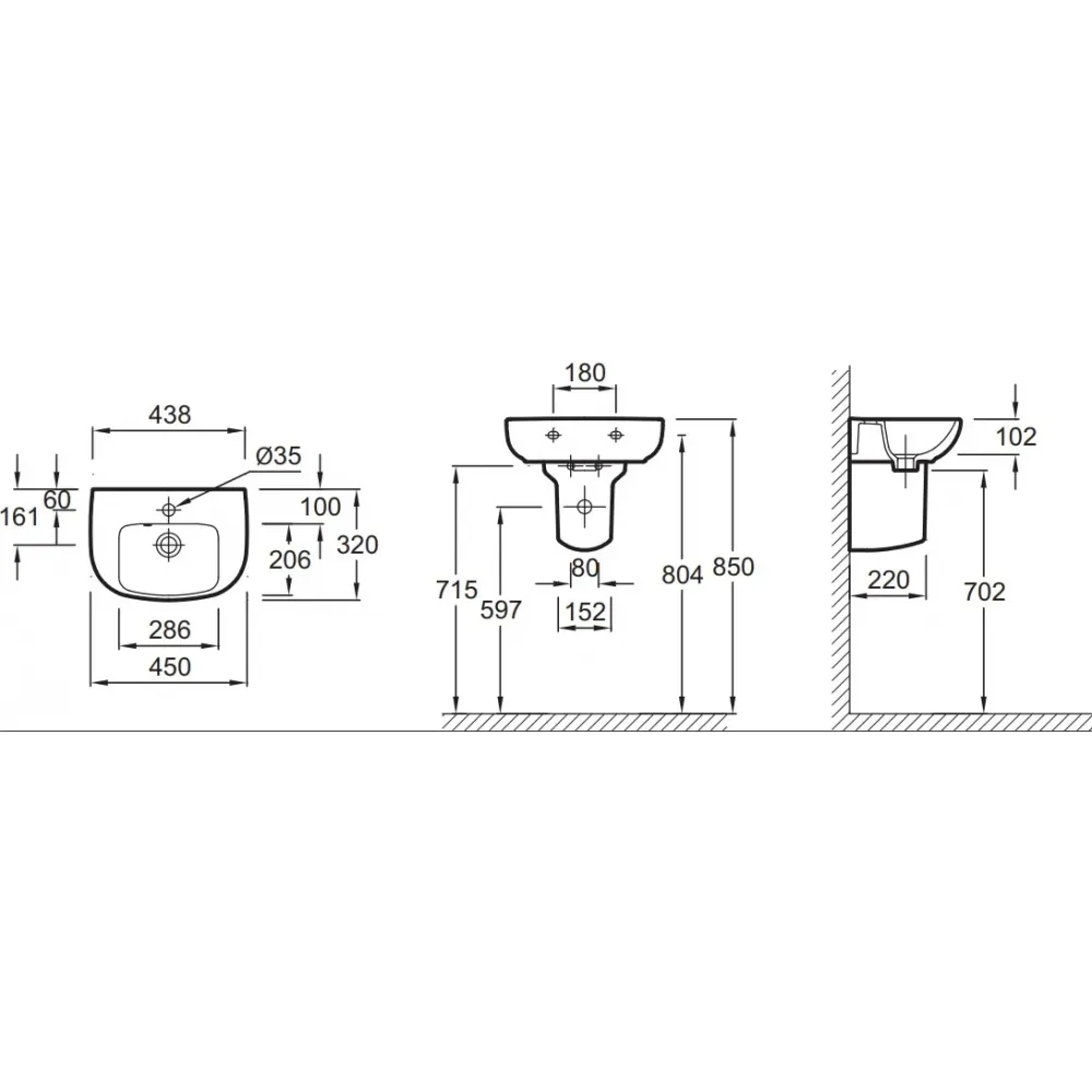 Технические характеристики Модуль с раковиной Odeon Up 45 см, белый, подвесной монтаж E4760-00+EB999D-N18 Jacob Delafon