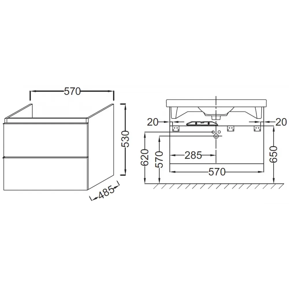 Мебель 60 см для раковины-столешницы, 2 выдвижных ящика