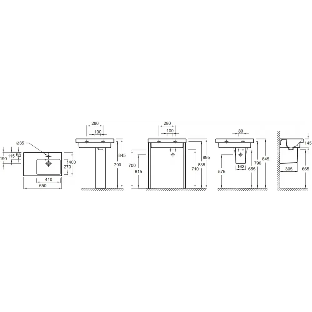 Технические характеристики Модуль с раковиной Odeon Up 65 см, серый дуб, левосторонняя, подвесной монтаж E4758G-00+EB991G-E71 Jacob Delafon