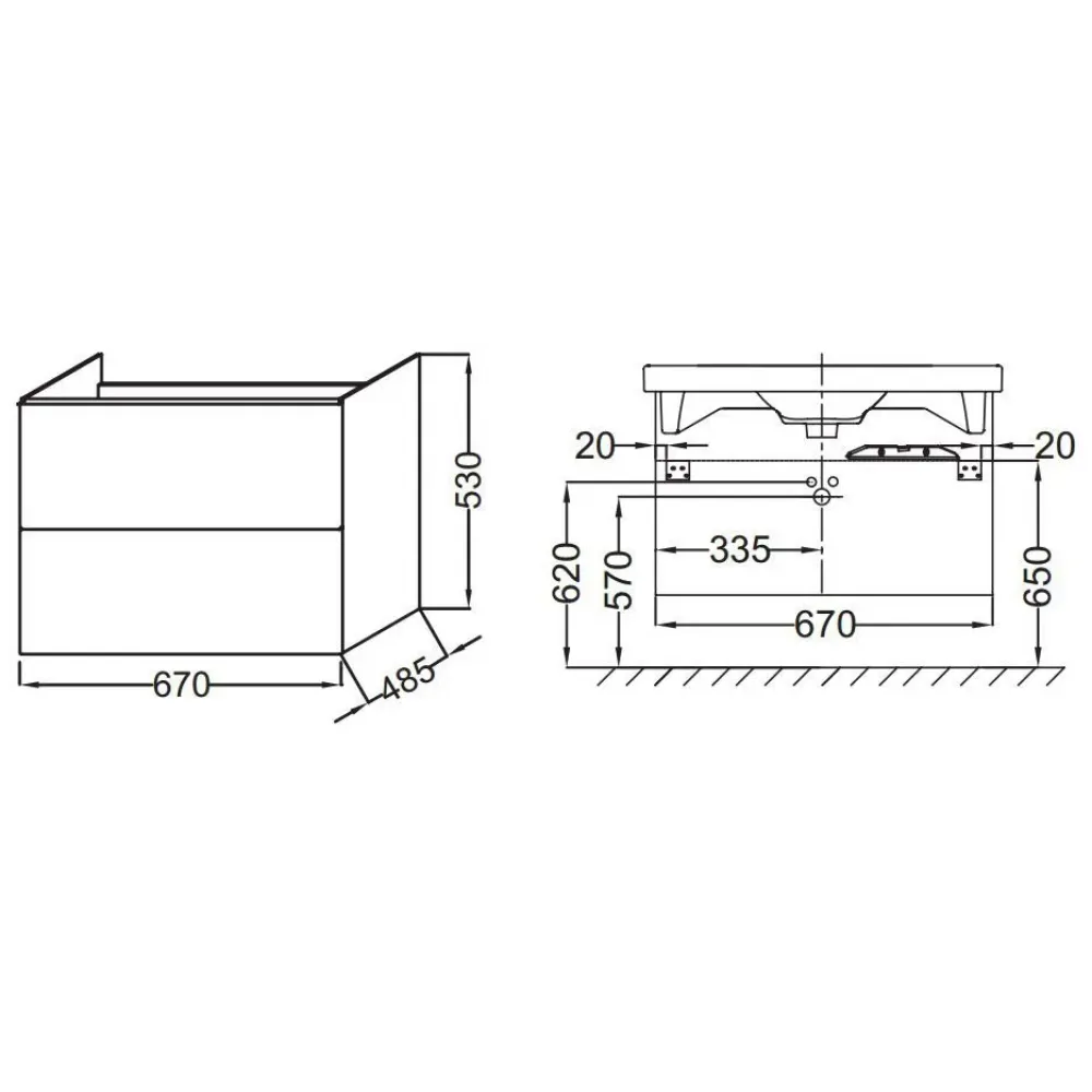 Технические характеристики Модуль с раковиной Odeon Up 70 см, белый блестящий, с двумя ящиками, плавное закрывание, подвесной монтаж E4732-00+EB890-N18 Jacob Delafon