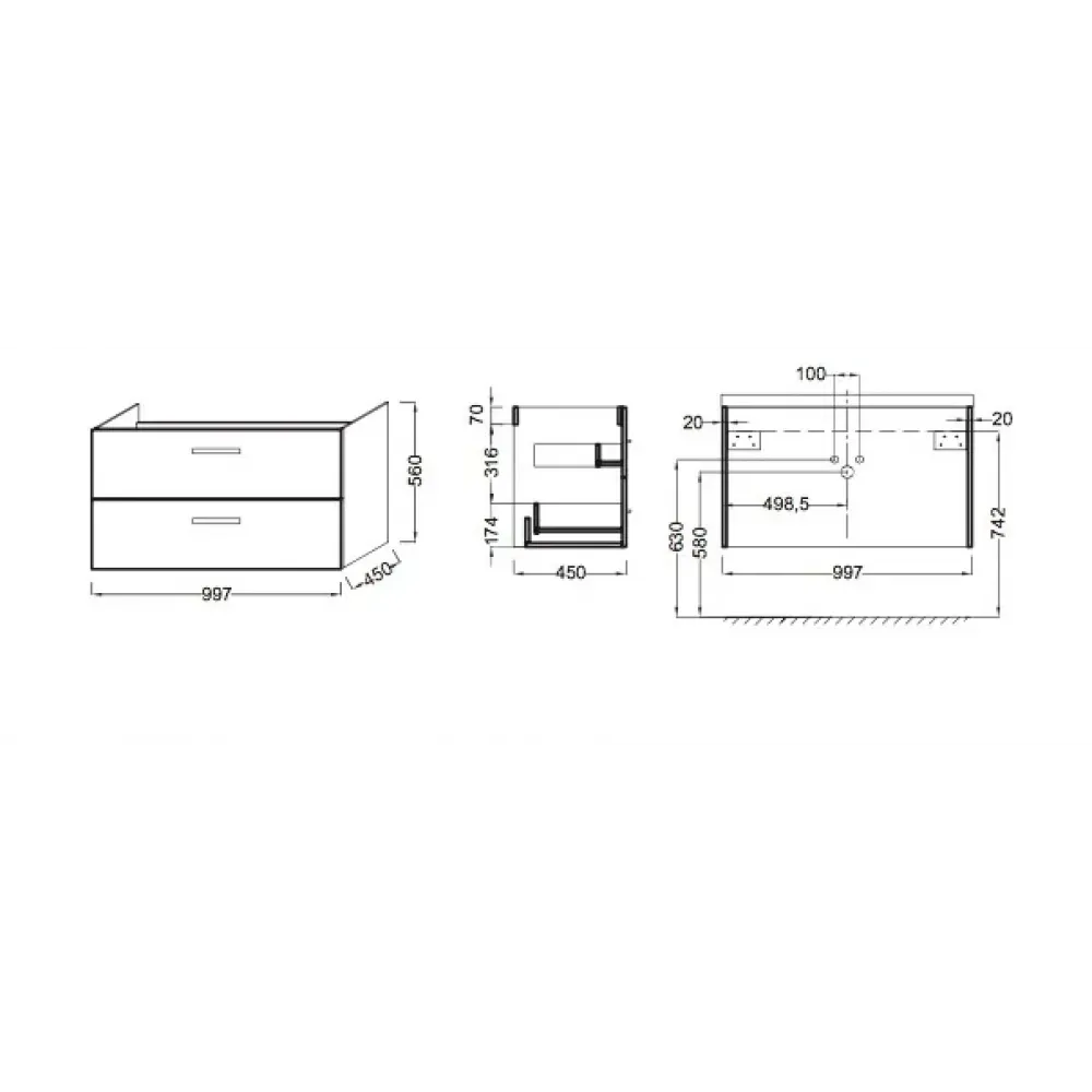 Технические характеристики Модуль с раковиной Ola 100 см, подвесная, с двумя ящиками, плавное закрывание , раковина-столешница, серый антрацит, подвесной монтаж EXU112-00+EB392-N14 Jacob Delafon