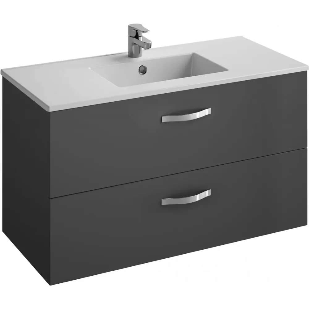 Модуль с раковиной Ola 99,7 см, подвесная, с двумя ящиками, плавное закрывание , раковина-столешница, серый антрацит, подвесной монтаж EB392RU-N14+EXUA112-00 Jacob Delafon