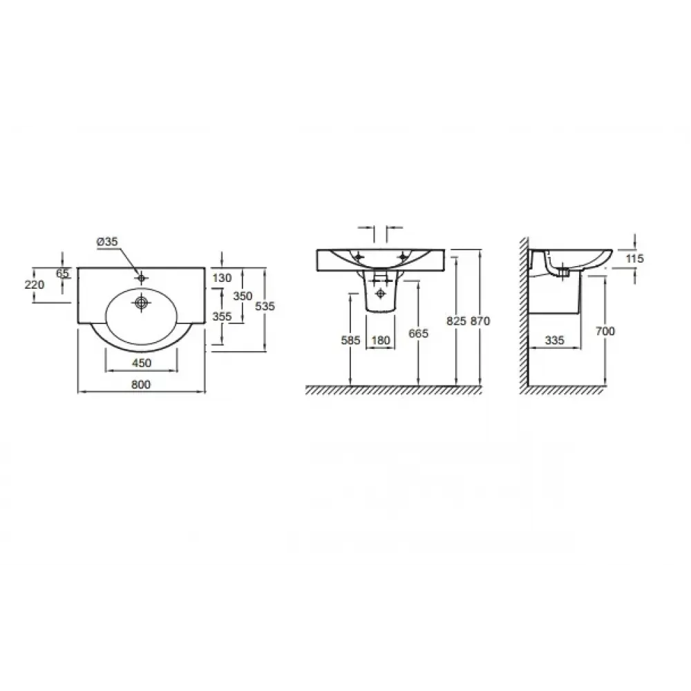 Полувстраиваемая раковина со столешницей (80 x 35см).
