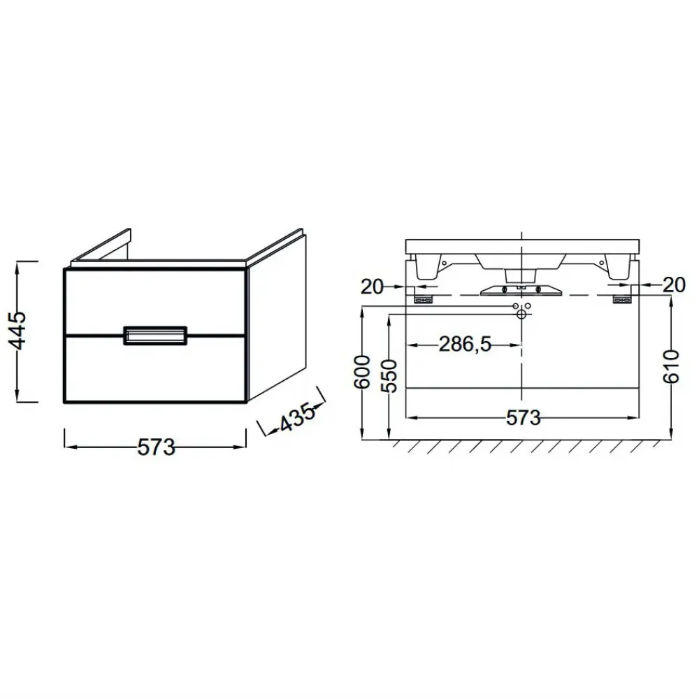 Тумба под раковину: 57 x 43,50 x 44,50 см