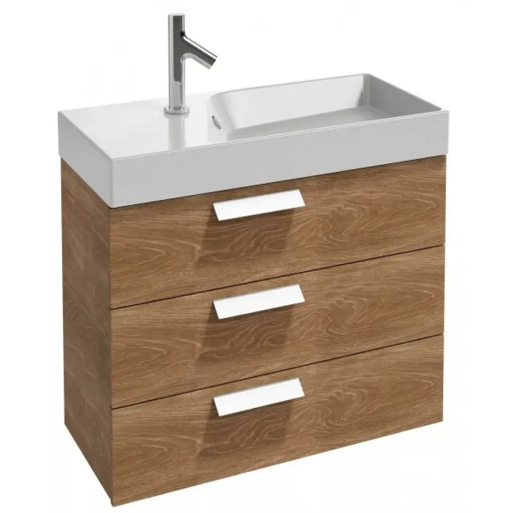 Модуль с раковиной Rythmik 60 см, арлингтонский дуб, 3 ящика, 4 ящ. для хранения, гладкая нижняя поверхность, подвесной монтаж EXQ112-Z-00+EB1307-E70 Jacob Delafon
