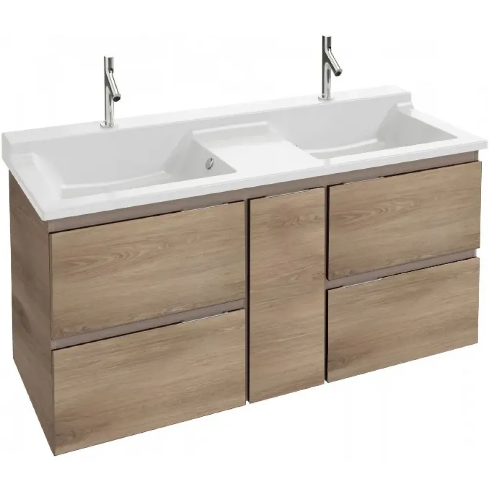 Модуль с раковиной Soprano 140 см, квебенский дуб, 4 ящика, 1 дверца, встроенные ручки, двойная раковина, подвесной монтаж EXJ122-00+EB1332-E10 Jacob Delafon